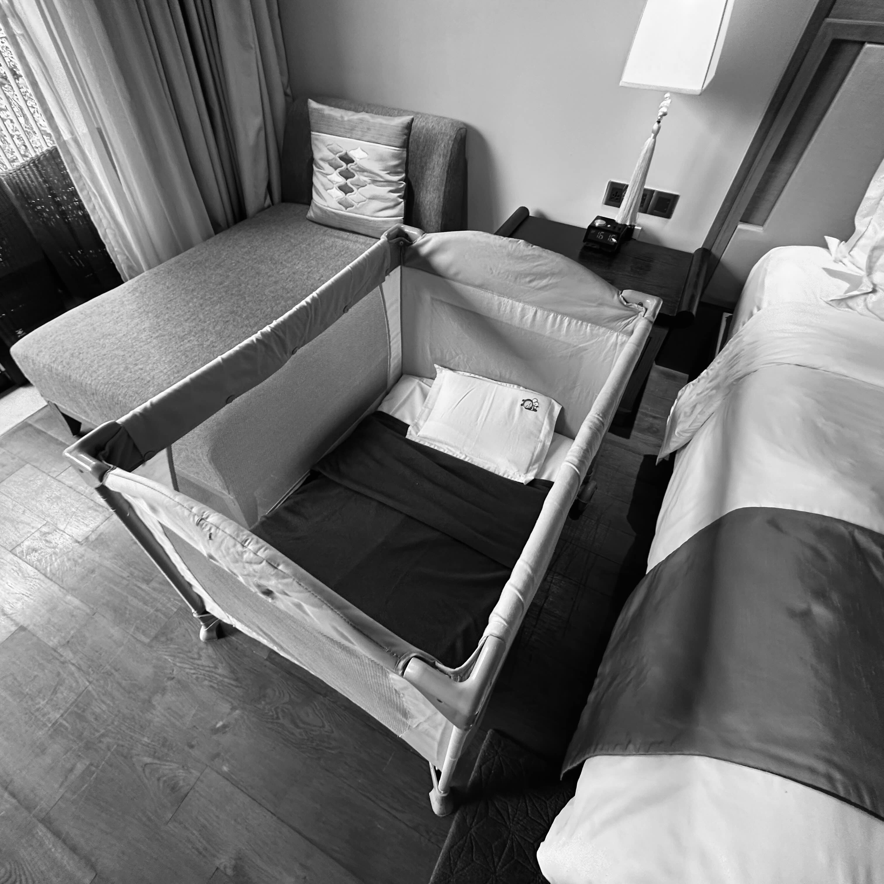 처제 방에는 미리 신청해둔 아기 침대가 따로 마련되어 있었습니다.